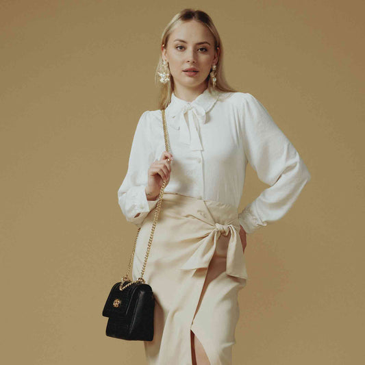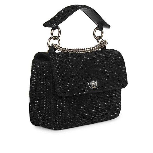 Alayna Black Leather Crystal Shoulder Bags With Detachable Handel