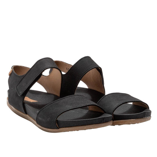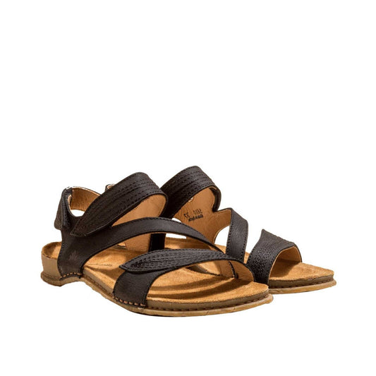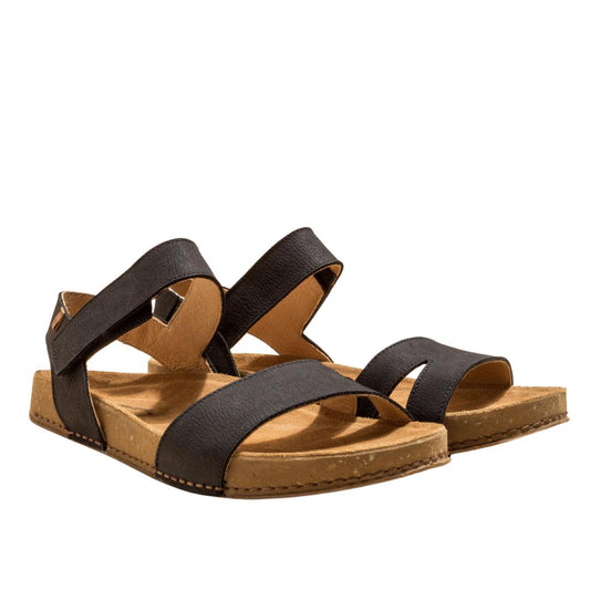El Naturalista Black Embellished Leather Block Sandals with Buckle