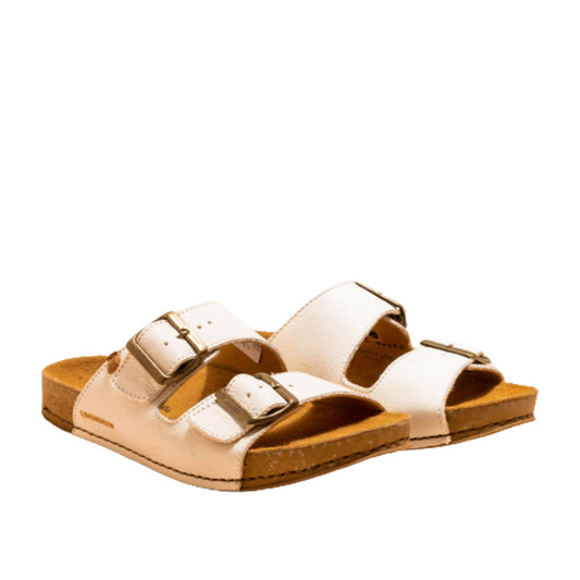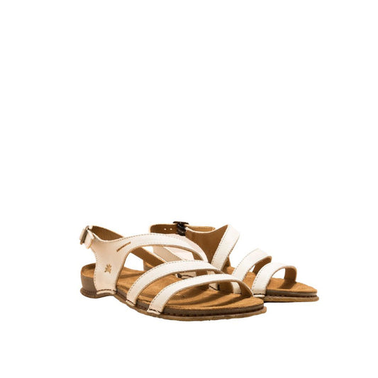 El Naturalista White Embellished Leather Block Sandals with Buckle