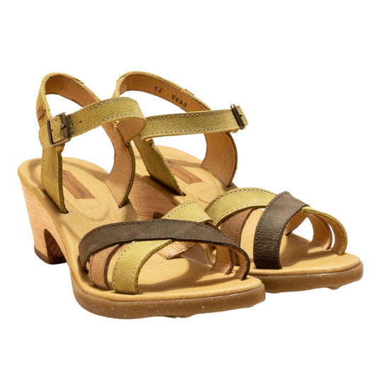 El Naturalista Multi Herbal Embellished Leather Block Sandals with Buckle