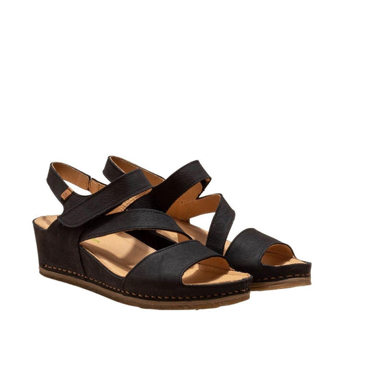 El Naturalista Black Embellished Leather Block Sandals with Buckle