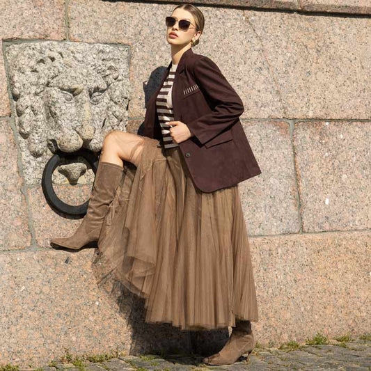 Saint Jemima Taupe Stretch Suede Kitten Heel Long Boots