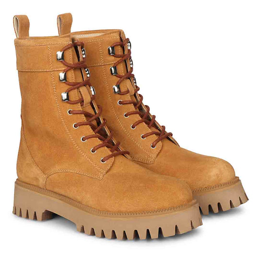 Saint Anastasia Tan Leather Lace Up High Ankle Boots
