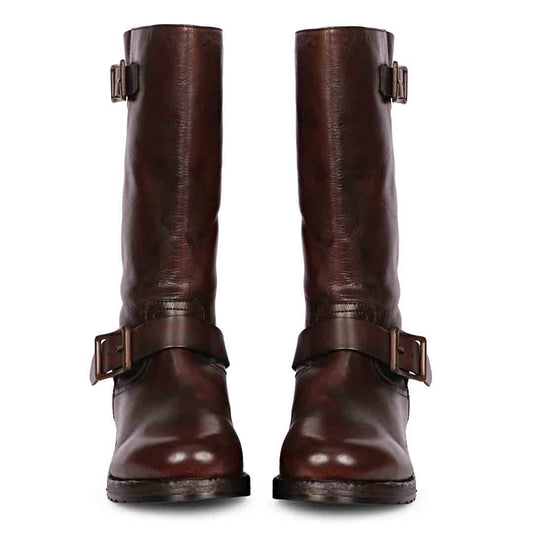 Saint Adette Buckle Decor Brown Leather Calf Boots