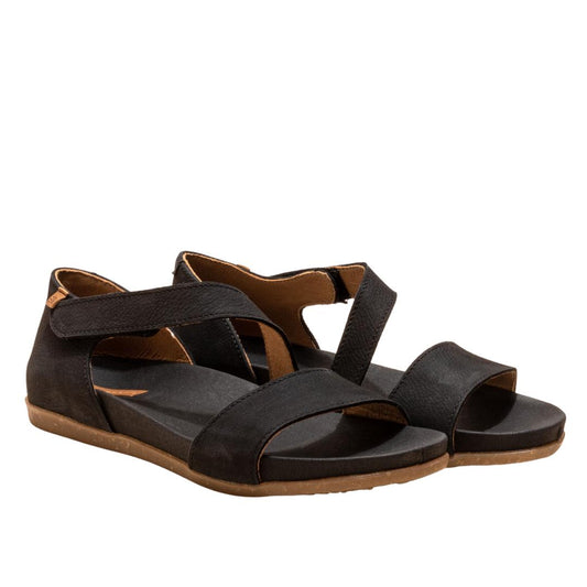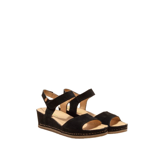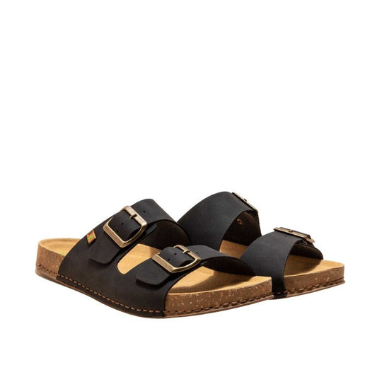 El Naturalista Black Embellished Leather Block Sandals with Buckle