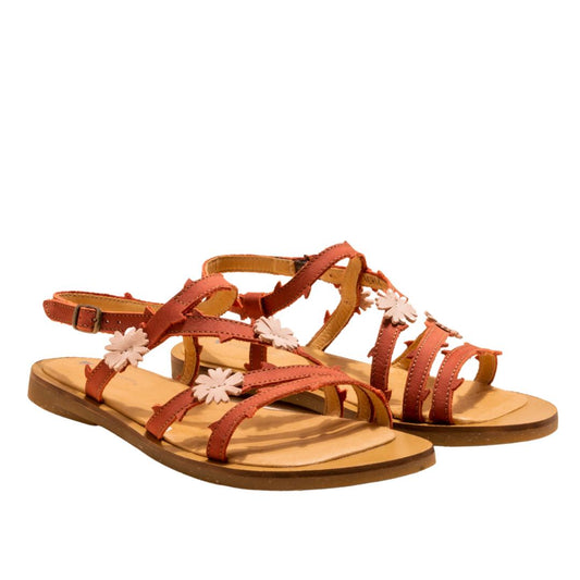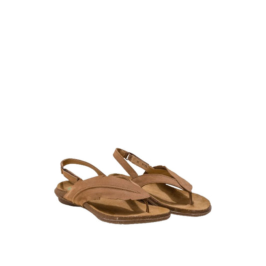 El Naturalista Brown Embellished Leather Block Sandals with Buckle