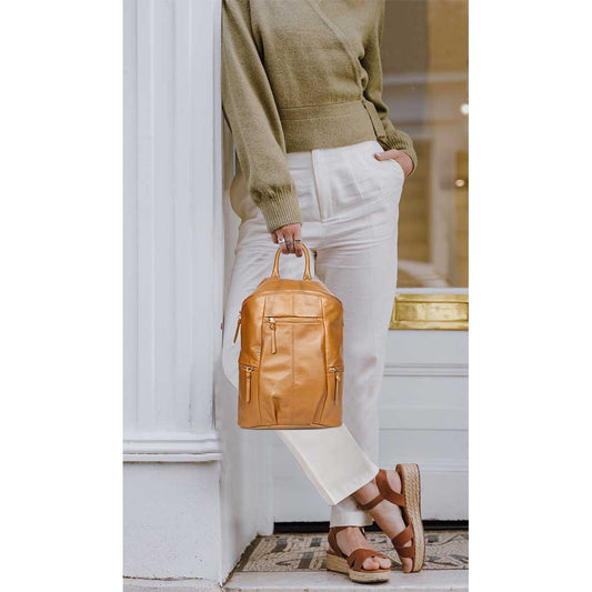 Favore Tan Leather Oversized Structured Backpacks