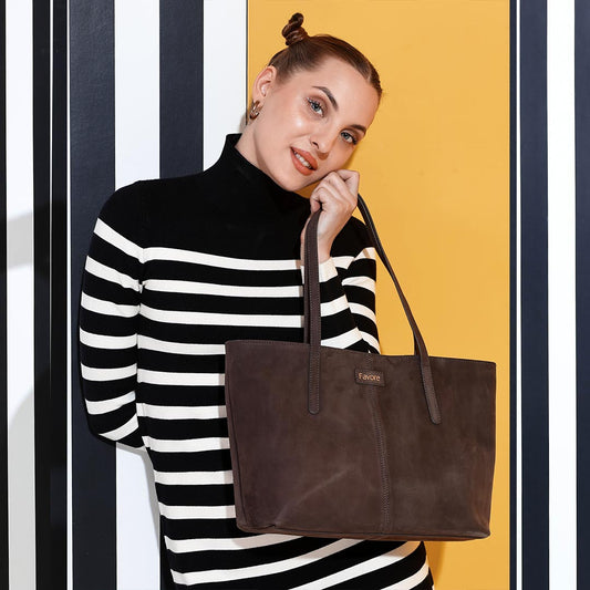 Favore Brown Womens Leather Shopper Tote Bag