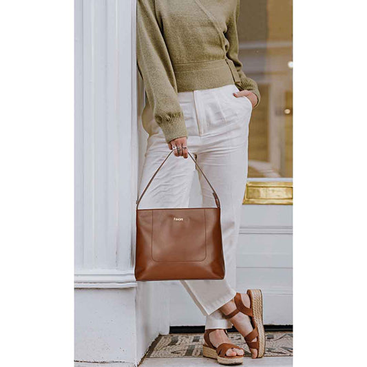 Favore Tan Womens Leather Structured Shoulder Bag