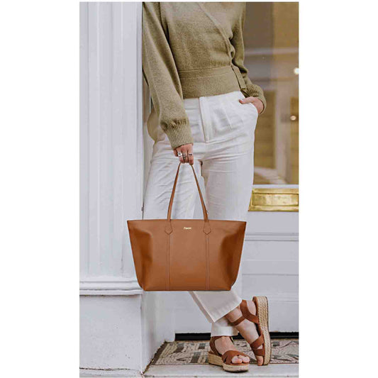 Favore Tan Textured Leather Oversized Shopper Shoulder Bag