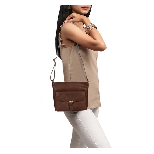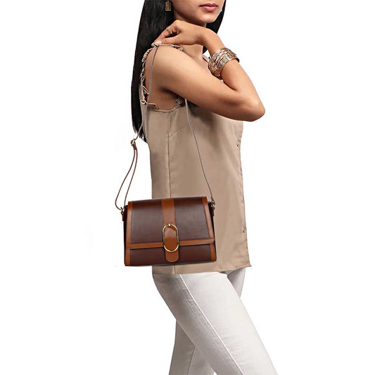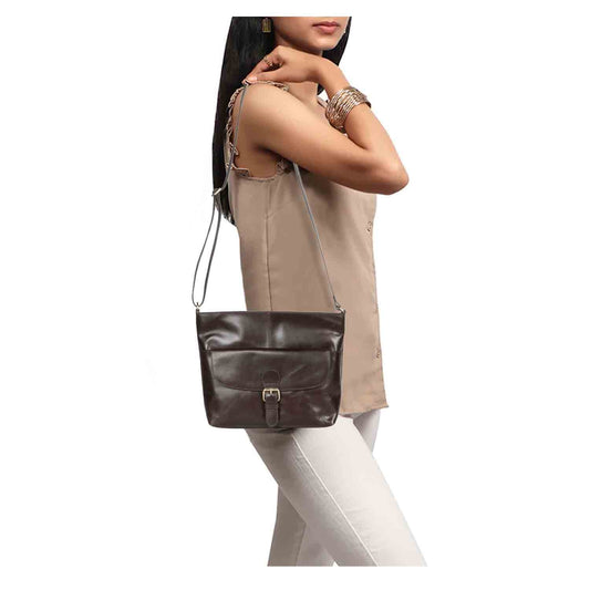 Favore Dark Brown Womens Leather Structured Sling Bag