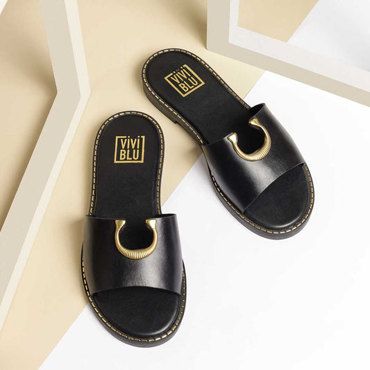 Sold outViviBlu Black Leather Flat Sandals