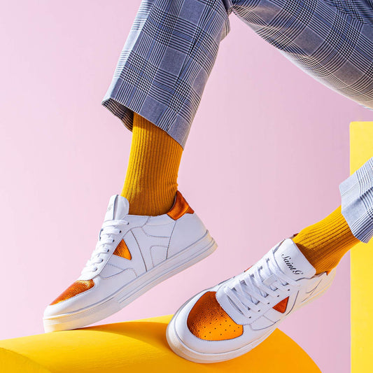 Whitesta Arlo White & Orange Leather Sneakers