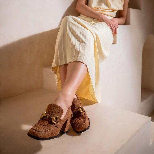 Saint Molly Brown Croco Embossed Leather Moccasins
