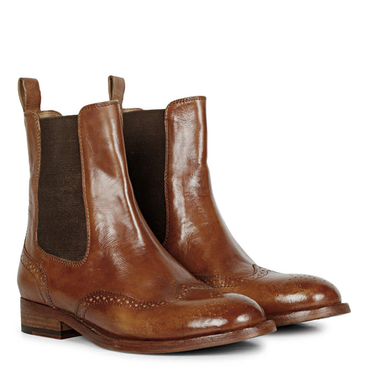 Saint Rose Rust Leather Front Zipper Pointed Toe Heel Boots