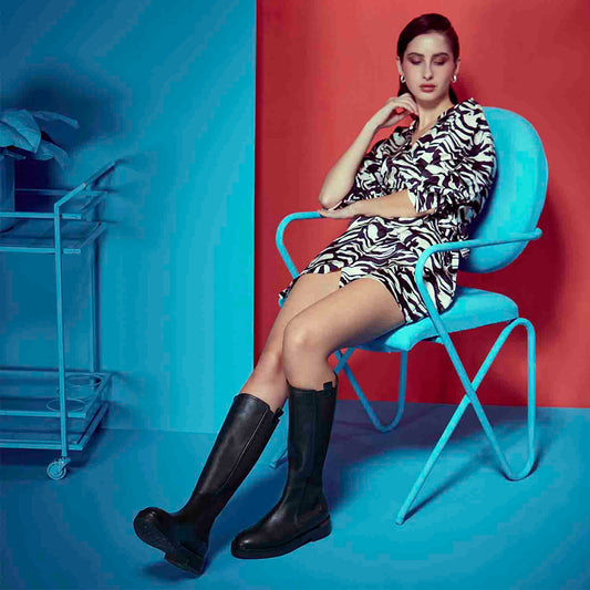 Saint Noble Black Leather Horse Bit Décor Long Boots