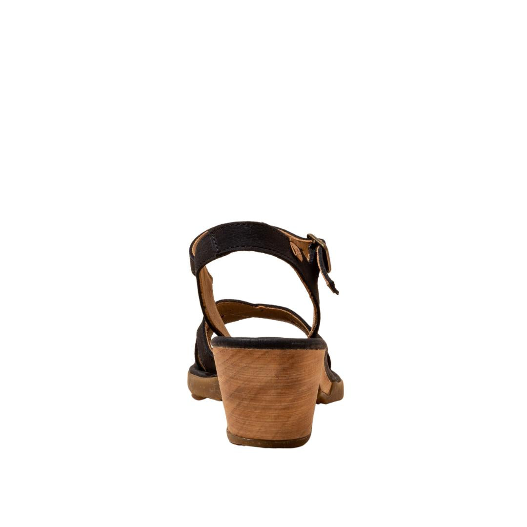 El Naturalista Black Embellished Leather Block Sandals with Buckle