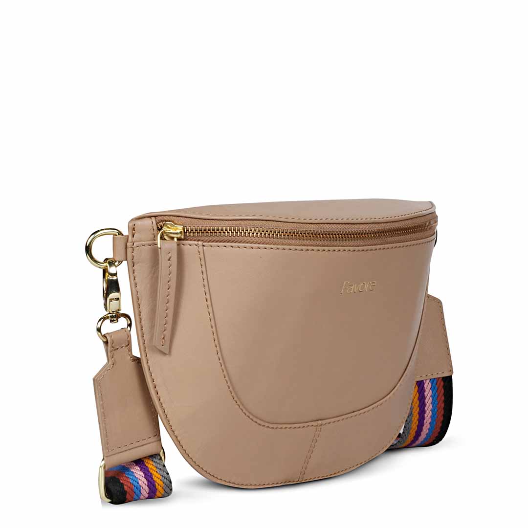 Favore Women Beige Leather Crossbody Fanny Bags
